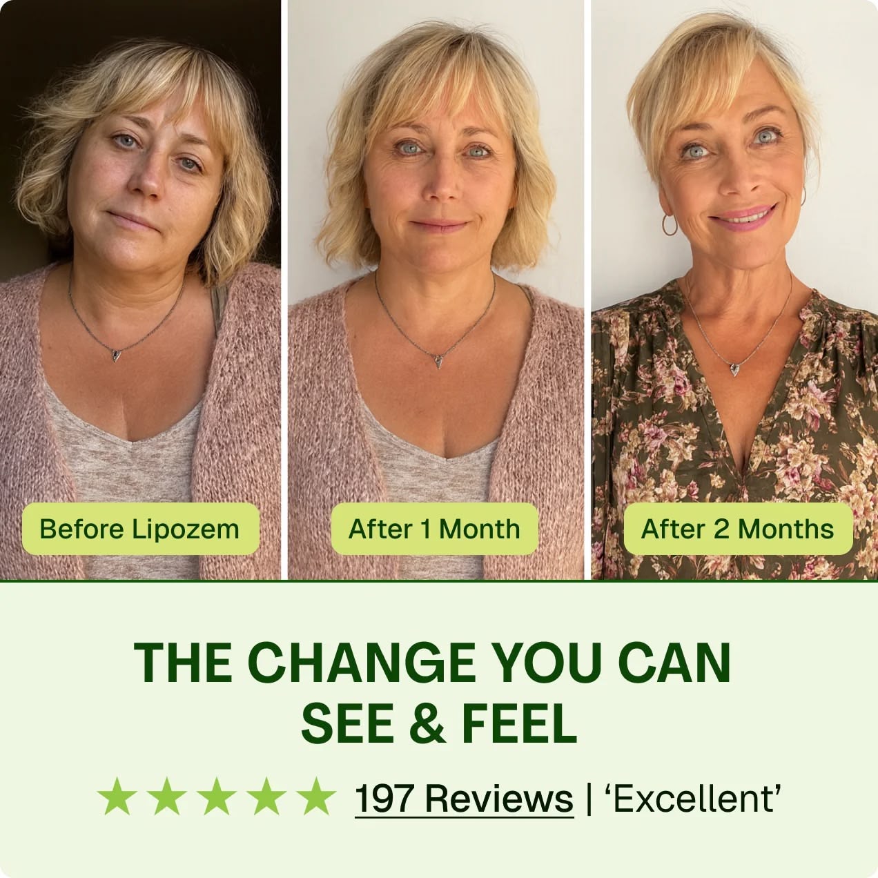 Yes! Lipozem is specifically formulated to address post-menopause metabolic challenges. Our inflammation-first formula targets chronically inflamed fat cells (the root cause of metabolic slowdown after menopause), while our BHB ketones activate natural fat burning. Most customers notice reduced bloating and increased energy within 7-14 days, with visible fat loss typically beginning around weeks 2-3.